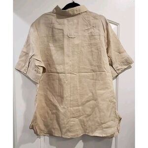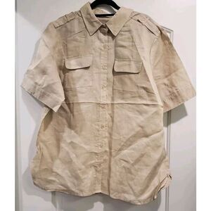 GIORGIANA BY NOJI 100% Linen Button Up Blouse Women's 2X Boxy Khaki Sleeves NWT