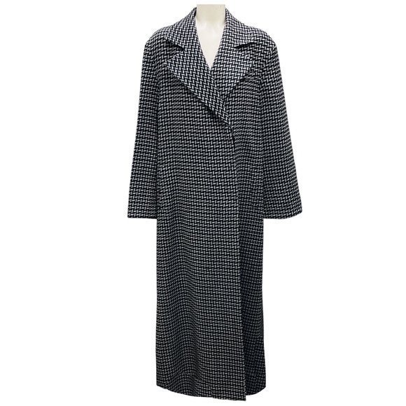 Giorgio Armani Black / Grey Houndstooth Patterned Wool Long Coat