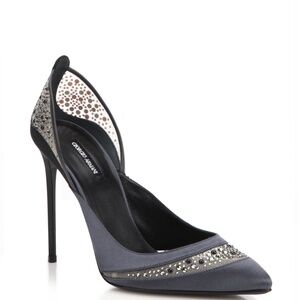 GIORGIO ARMANI Black, Gray, Satin, Mesh & Rhinestone Formal Heels