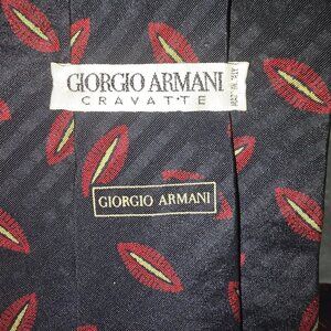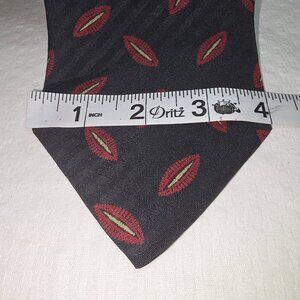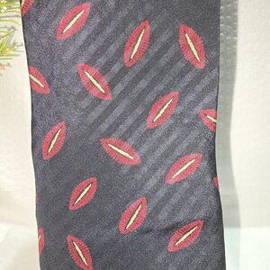 GIORGIO ARMANI CRAVATTE 100% SILK TIE BLACK WITH RED AND YELLOW OVAL DESIGN EUC