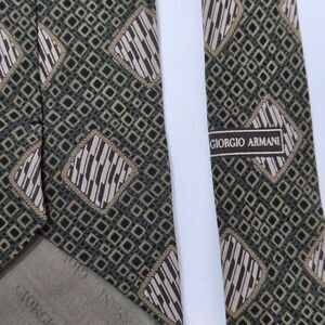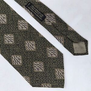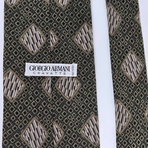 GIORGIO ARMANI CRAVATTE SILK TIE OLIVE GREEN GEOMETRIC SQUARES 4" X 57"