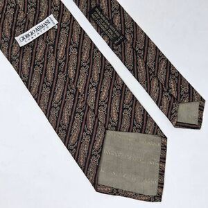 GIORGIO ARMANI CRAVATTE SILK TIE BROWN BLACK PAISLEY PIXEL STRIPE SATIN 4" X 57"