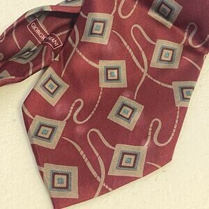 GIORGIO ARMANI Cravatte Burgundy Gray Geometric Silk Necktie TIE 58.5"L x 3.75"W