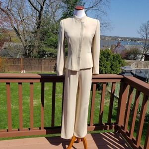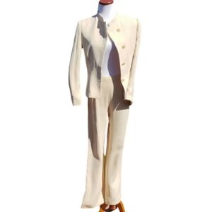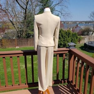 GIORGIO ARMANI Cream Pants Suit BARBIECORE Silk Blazer Borgo 21 Set Womens 8