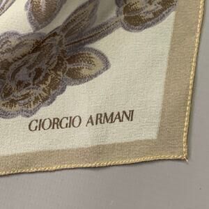 GIORGIO ARMANI scarf in a grey and blue silk featuring a floral pattern and picture frame border.
