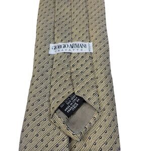 This Armani necktie measures 57" long and 3.75" wide. Please refer to the photos for more details. As with any used item, some minor wear and marks can be expected.