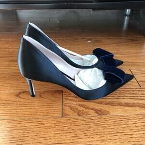 GIORGIO ARMANI RARE DECOLLETTE Black Satin Blue Velvet Accent Women’s Size 7 NWT