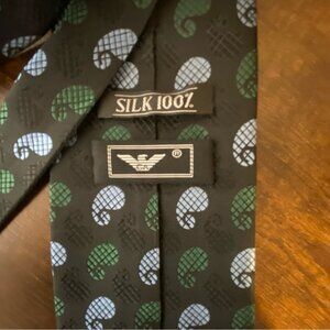 GIORGIO ARMANI Silk Neck Tie Black Green Blue Paisley Pattern Elegant