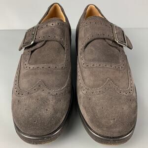 GIORGIO ARMANI Size 11 Brown Perforated Leather Monk Strap Loafers