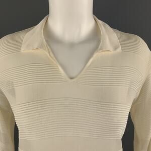 GIORGIO ARMANI Size 4 Cream Burnout Striped Viscose Collared Pullover