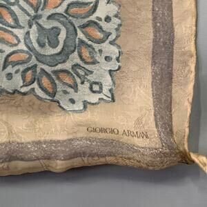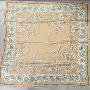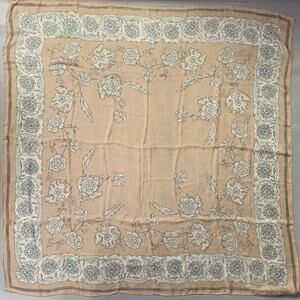 GIORGIO ARMANI Tan Blue Floral Silk Scarf Shawl
