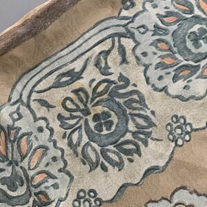 GIORGIO ARMANI shawl in a tan and blue silk featuring a floral pattern, hand rolled edges, and picture frame border.