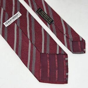 GIORGIO ARMANI CRAVATTE SILK TIE RED BLACK TEXTURED STRIPE SATIN 4" X 57"