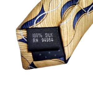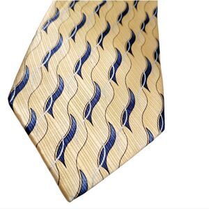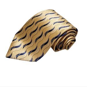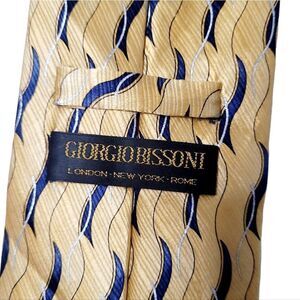 GIORGIO BISSONI Men's Neck Tie Gold Yellow with Blue & White Design 100% Silk