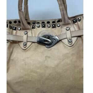 GIORGIO BRATO Beige Leather Studded Tote Bag