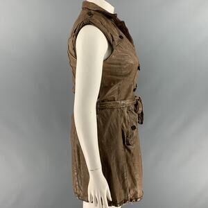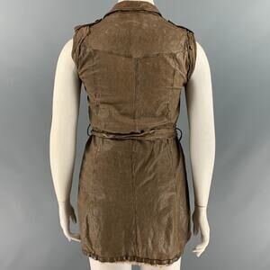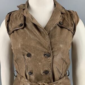 GIORGIO BRATO Size 10 Brown Taupe Leather Distressed Belted Vest