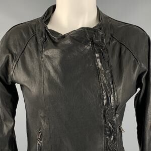 GIORGIO BRATO Size 6 Black Leather Zip Up Jacket (Outdoor)
