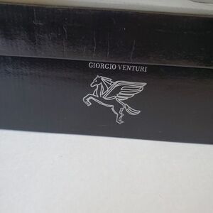 Men's Giorgio Venture black cap-toed lace-up dress shoes, size 9M. Material content is leather. My husband is the original owner of these dress shoes, which we purchased between 10-20 years ago. He has worn them a handful of times over the years, for a couple of funerals and weddings. Box is in rough shape and these shoes will be packed and shipped in original box unless otherwise requested.