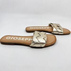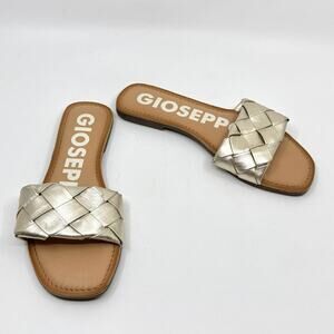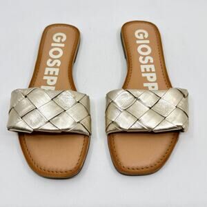 GIOSEPPO Woven Champagne Leather Mule Sandals