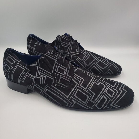 GIOVANNI CONTI SUEDE LEATHER DESIGN SHINY DRESS SHOE LACE LOAFERS BLACK 42 US 9