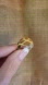 Stylish ring with a giraffe print design. Features brown and yellow colors.