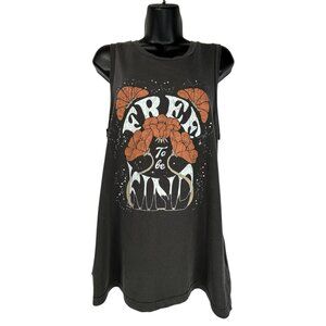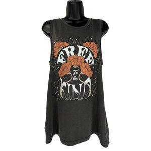 GIRL DANGEROUS Free To Be Kind Tank Top Sz M Black Floral Graphic 100% Cotton
