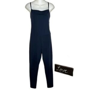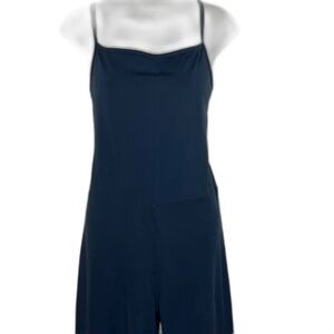 The only compressive unitard you will ever need, made from 36 recycled water bottles for all your yoga, pilates, and looking cute needs. It's like your favorite cami and coziest leggings had a baby. In "Midnight" navy blue, featuring adjustable spaghetti straps and pull on styling. In excellent, pre-owned condition no signs of wear, pilling or over stretching.