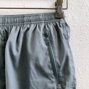 Built-in underwear lining. Zippable pockets. Drawstring waist. Designed with a slightly loose fit. In very good preowned condition with some pilling allover.