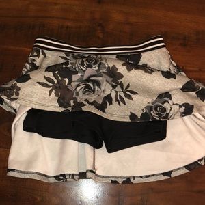 One Justice skirt with black and gray flowers 🌺. It has an elastic waist and it has built in shorts