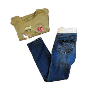 Size 6!! Good used condition. Free from rips, tears and stains. Long sleeve girls shirt size 6 paired with jeans (justice brand) size 6