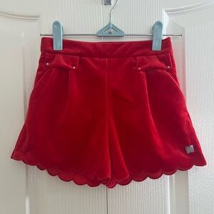 GIRL'S CARREMENT BEAU RED VELOUR SHORTS size 8