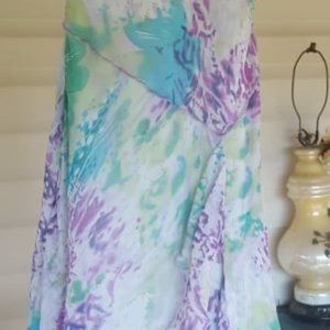 VERY NICE, COMFORTABLE CASUAL DRESS MULTI COLORED WITH FLOWY SKIRT ..WORN COUPLE TIMES