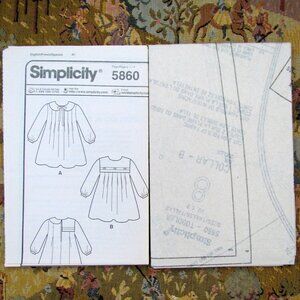 GIRL'S DRESS PATTERN, Sz 1/2 - 4 TODDLER - SIMPLICITY 5860 UNCUT, NWT FOR SEWING