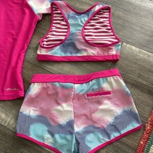 GIRL'S Eddie Bauer Youth Reversible 4 Piece Swim Set Size 10/12