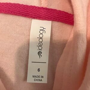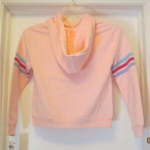 This is a brand new, never worn little girls Ideology hooded sweatshirt which is fleece lined and has a front kangaroo pocket. Super cute rainbow stripe on each arm with blue, dark pink and purple stripes. All original store tags still attached.