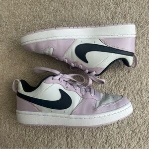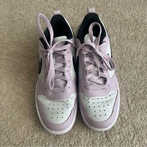 GIRLS GS Nike Court Borough low 2 sneakers size 6Y Lilac/lavender and black sneakers In great condition worn maybe once Grade school SIZING 6Y is equivalent to 7.5-8 in women’s :)