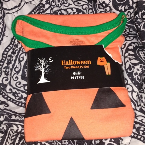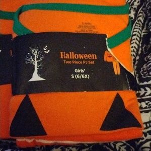 NWT Girls size 7/8 Halloween ๐ PJ set. long sleeve and pants. Shirt is a jack-o'-lantern & Pants are striped