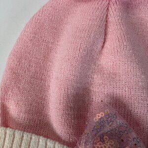 GIRLS Pink Glitter Bow Pom Pom Beenie