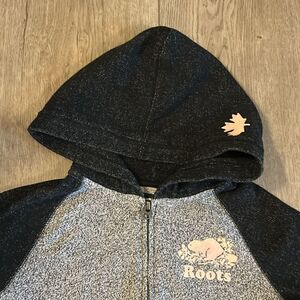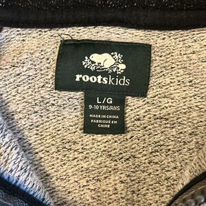 GIRLS ROOTS ZIP UP GRAY AND BLACK SWEATSHIRT WITH HOOD SIZE 8 EUC
