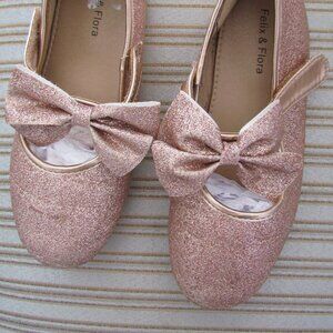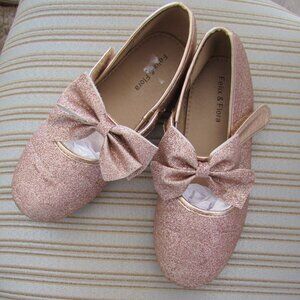 GIRL'S SHOES, 13, FELIX & FLORA GOLD GLITTER MARY JANES w BOWS, VELCRO CLOSURE