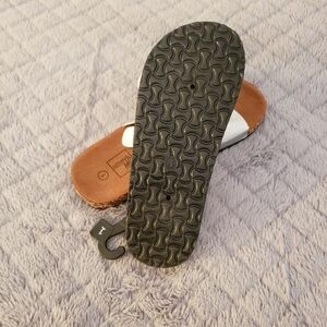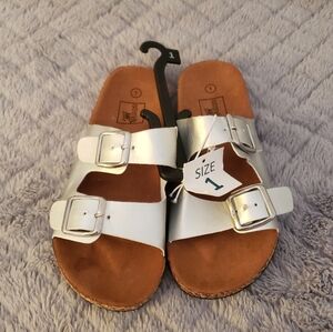 * GIRLS SILVER DOUBLE STRAP SLIP ON SLIDES LOUNGE SANDALS SIZE 1 NWT