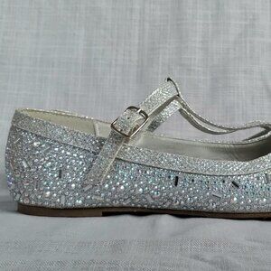 GIRLS SILVER RHINESTONE FLAT DRESSY SHOES BIG KIDS SIZE 4