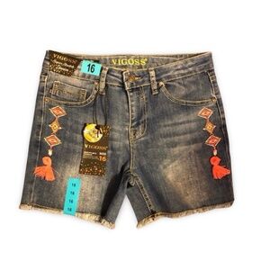 GIRLS Vigoss embroidery & tassel Jean shorts