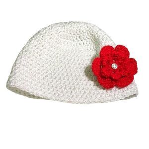 GIRLS' HANDMADE KNIT HAT WITH FLOWER AND RHINESTONE. PURCHASED FOR MY DAUGHTER AT A CRAFT SHOW. PLEASE GO BY MEASUREMENTS FOR SIZE. THIS WAS WORN ONCE! IT IS SUPER CUTE WORN WITH THE FLOWER ON THE SIDE. ALSO INCLUDES AN INTERCHANGABLE BLACK FLOWER THAT BUTTONS ON THE RHINESTONE CENTER! EXCELLENT CONDITION! CONSISTENT 5 🌟 SELLER WHO SHIPS THE NEXT DAY FROM A CORONA VIRUS-FREE PET-FREE SMOKE-FREE HOME