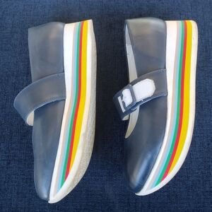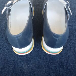 GIROTTI Mary Jane Leather Platform Heel Loafers Size 39 Blue