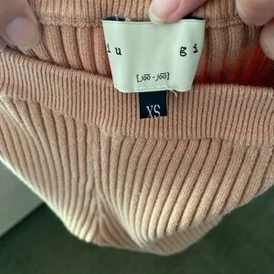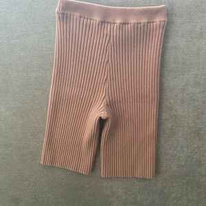 Ribbed bike shorts from GIU GIU in a medium tan cotton-nylon knit blend. Pull-on style with an elasticized high waist. Mid-thigh length. Made in USA.