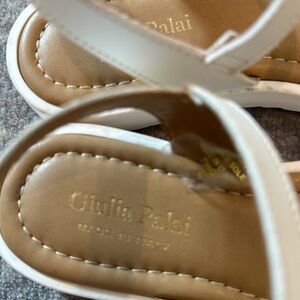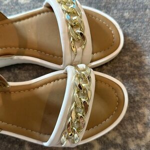 GIULIA PALAI ITILIAN KIDS SANDALS SIZE 2 WITH VALCRO CLOSURE WHITE WITH GOLD TONE CHAIN. SIMPLY CHIC AND WORN ONLY ONCE. MADE IN ITALY. ORIGINAL BOX INCLUDED