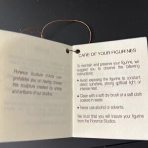 This is a breathtaking Giuseppe Armani Bride and Groom, "Just Married" 1157 P figurine in mint condition. The woman is wearing a detailed and beautiful laced white wedding dress and is carrying a flower bouquet. Her face is very detailed and realistic. The man is just as detailed with his brown and white tuxedo suit. Giuseppe Armani plate in front of wooden base is lose. It was made in Florence Italy and has the authentic symbol inscribed in the back. Both figures stand on a wooden base. Box included. As you can see in the last picture. Original retail price is $550.
