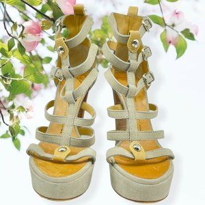 Giuseppe ZANOTTI Beige Suede GLADIATOR Platforms open-toe shoes