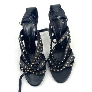 GIUSEPPE ZANOTTI Black Studded Multi-Strap Heels